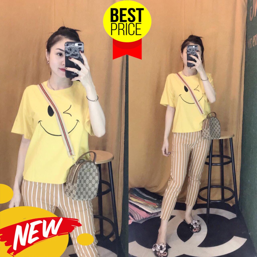 [Mã WA23150 giảm 20k đơn 150k] Đồ bộ vải cotton In mặt cười giăc không bai không xù không chùn